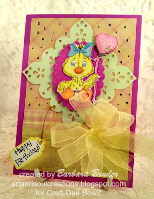 Well that's all from me for this month...I do hope you like my fun card and that you have a go at a project and join us in the Craft-Dee BowZ MONTHLY challenge following the" ANYTHING WITH A HANDMADE BOW.